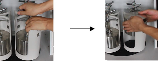 打開機蓋,用手擰松兩角螺母,拿開Y型絲桿、扁擔、墊片,取下球磨罐。