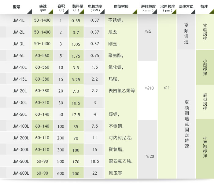 主軸帶動(dòng)攪拌器高速旋轉(zhuǎn),使研磨介質(zhì)做不規(guī)則的運(yùn)動(dòng),這種雜亂無序運(yùn)動(dòng)會(huì)產(chǎn)生研磨介質(zhì)的碰撞、擠壓、磨擦和剪切,從而使物料粉碎、細(xì)磨。另外,研磨介質(zhì)間的大小、形狀及配比不同,其獲得的研磨效果也不同。一般情況下,研磨介質(zhì)的規(guī)格越大,物料粉碎越粗。反之,研磨介質(zhì)越小,物料研磨越細(xì)。而不同規(guī)格研磨介質(zhì)的適當(dāng)配比,再加上速度的適當(dāng)調(diào)節(jié),其研磨效果更佳。