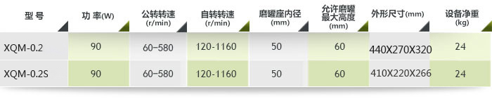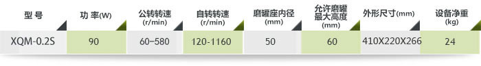 表一:XQM-0.2S微型行星式球磨機放入手套箱型號如下
