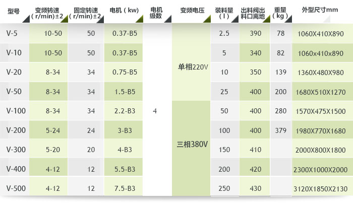 五、V型混合機(jī)參數(shù)