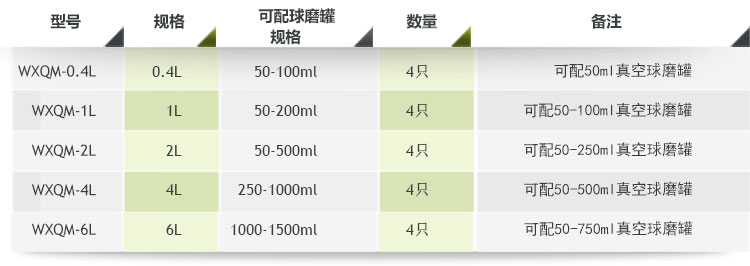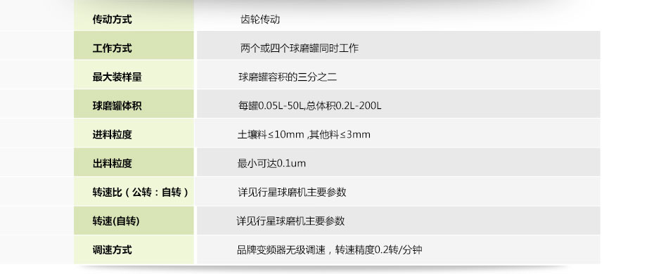 表二:輕型臥式行星式球磨機主要參數(shù)